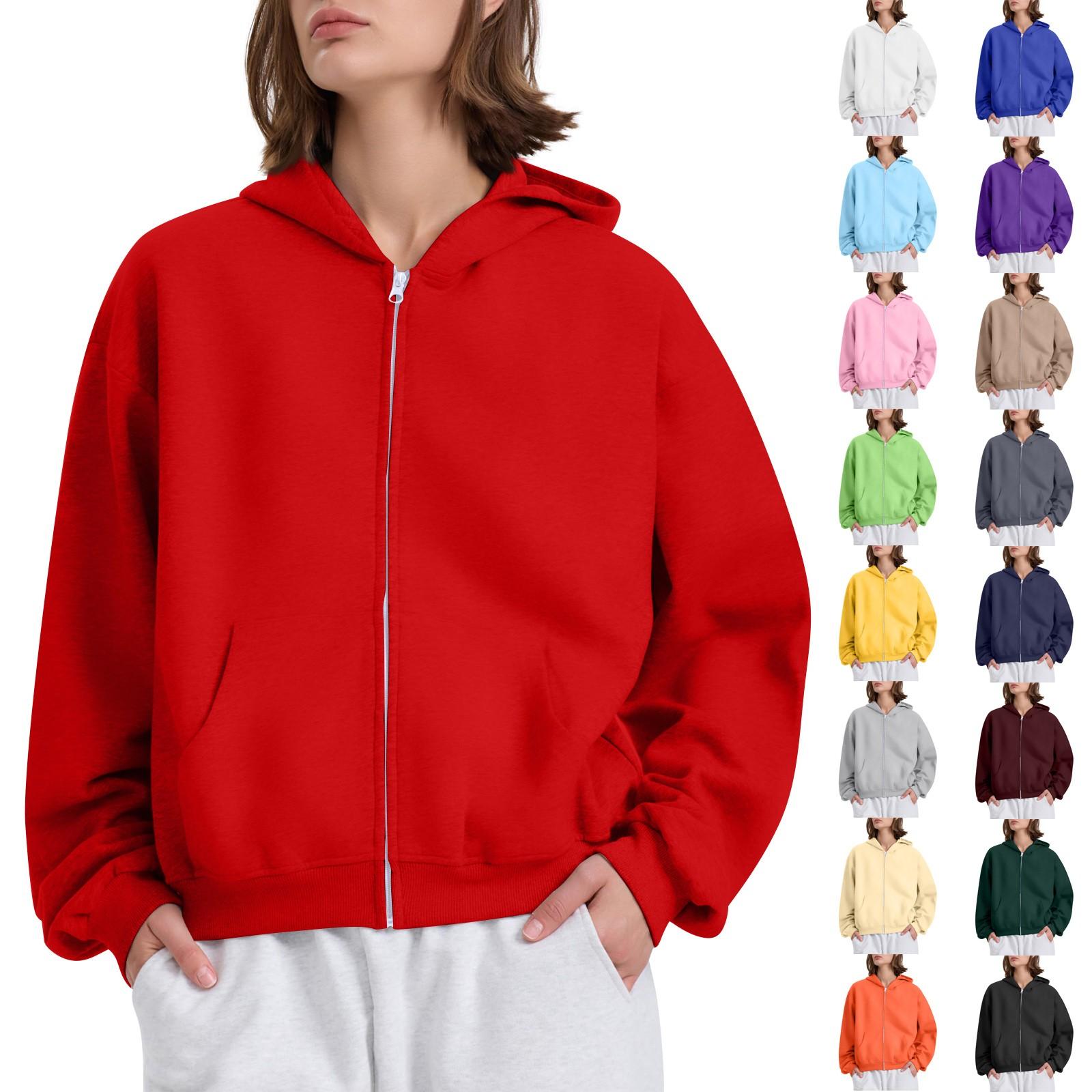 Damska bluza z kapturem z długim rękawem i zamkiem błyskawicznym L wielbłądzi