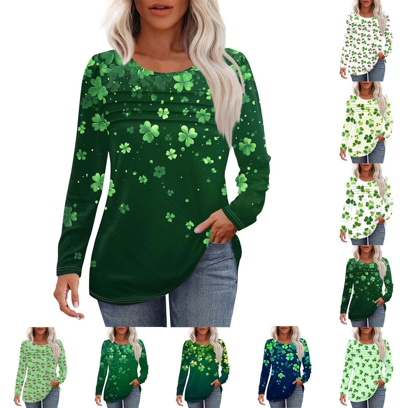 Damski luźny swobodny nadruk okrągły dekolt plisowany długi rękaw modny top Top M niebieski