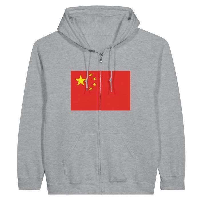 Sweat à capuche à fermeture éclair – PIXELFORMA – Drapeau de la république populaire de Chine – Gris