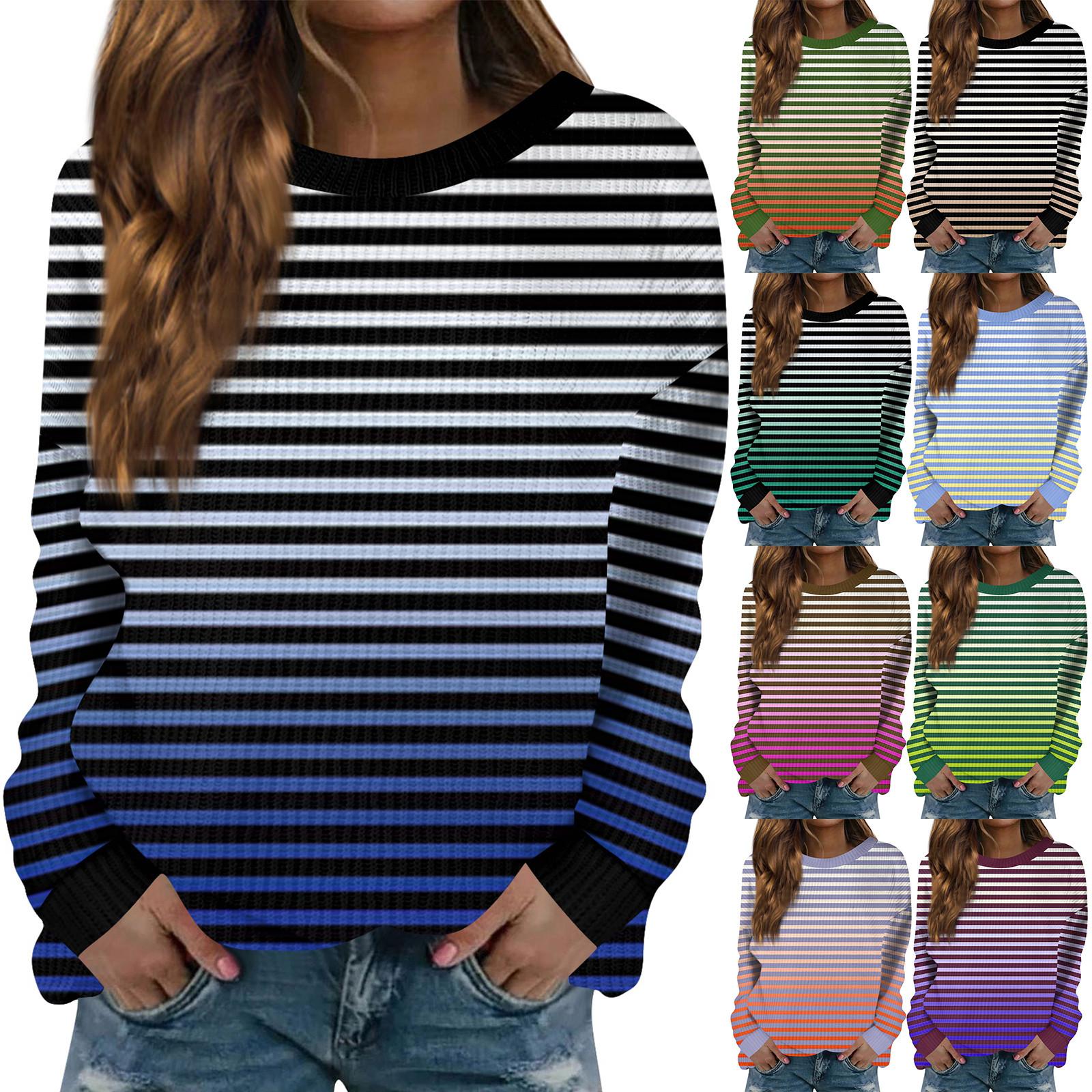 Women’s Fashion Casual Long Sleeve Printed Round Neck Woolen Knit Pullover Top L
