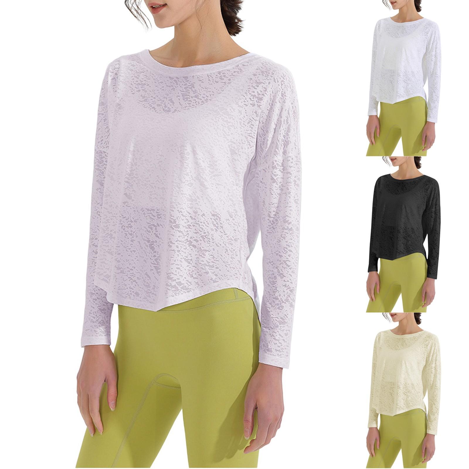 Women’s Long Sleeve Shirt Loose Satin Top Embossed Lace R-neck Silk Lined Top XL
